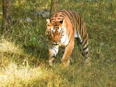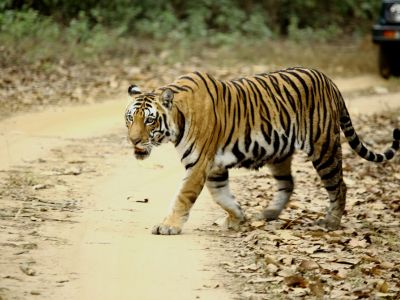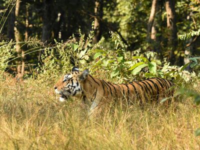 Early morning wake-up with tea/coffee, followed by a safari drive. Kanha offers excellent opportunities for tiger sightings—especially as they often walk along the safari tracks.